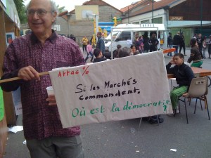 … avec ici, une habile tentative de masquage du verre par un panneau militant !