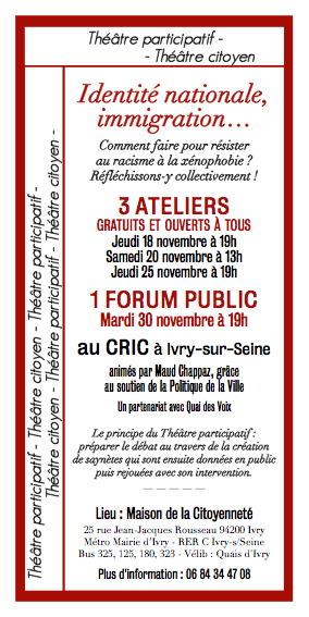 Avec le CRIC – Maud Chappaz comédienne intervenante en Théâtre Forum animera la soirée avec ses complices pour