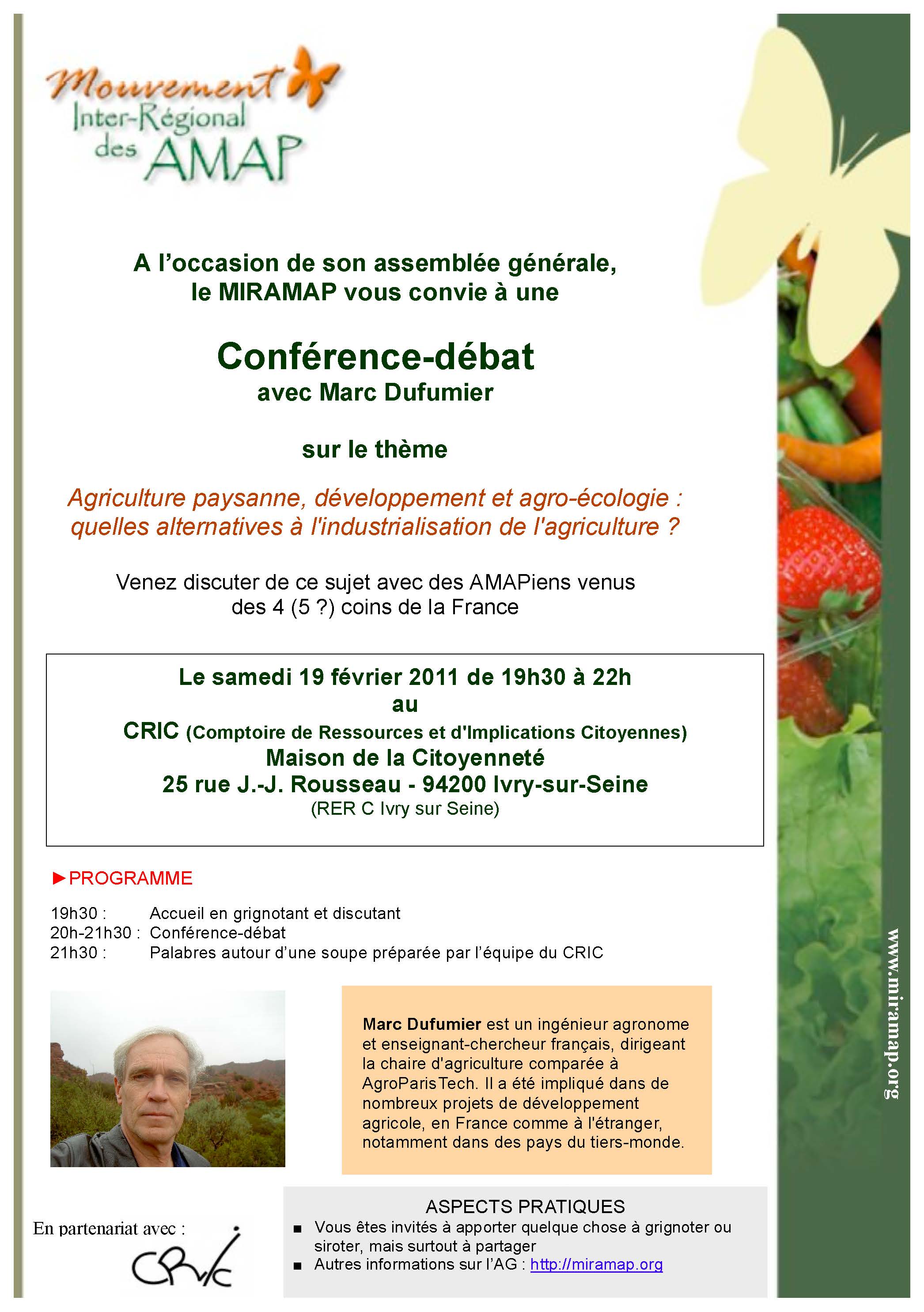 Soirée proposée par le Miramap – Mouvement Inter Régional des Amap en partenariat avec le CRIC