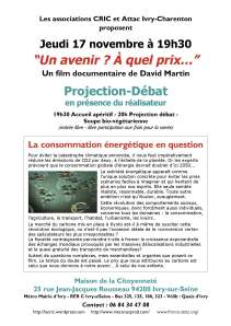 19h30 Accueil apéritif – 20h Projection débat – Soupe bio-végétarienne