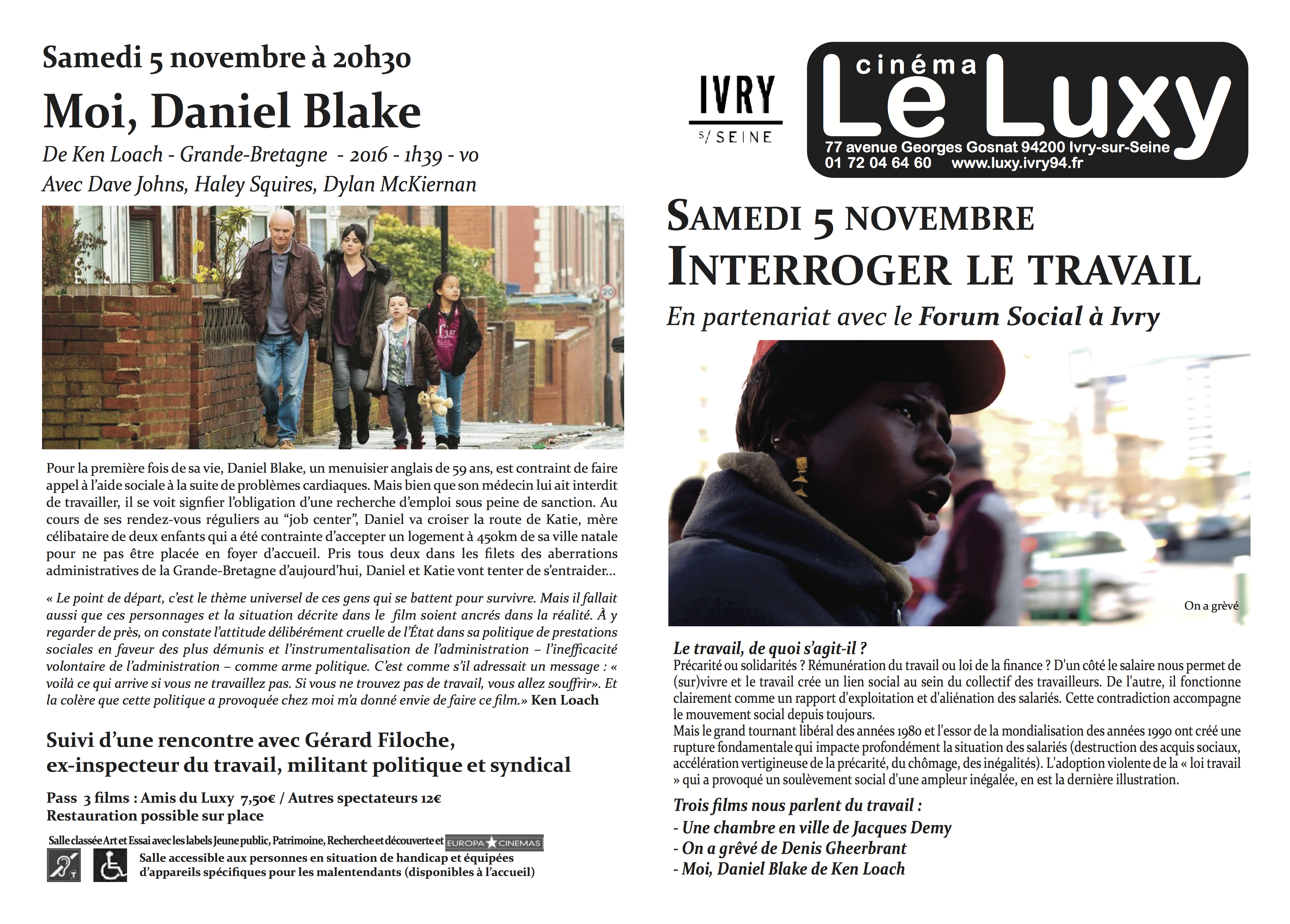 Trois films pour interroger le travail Samedi 5/11 à Ivry
