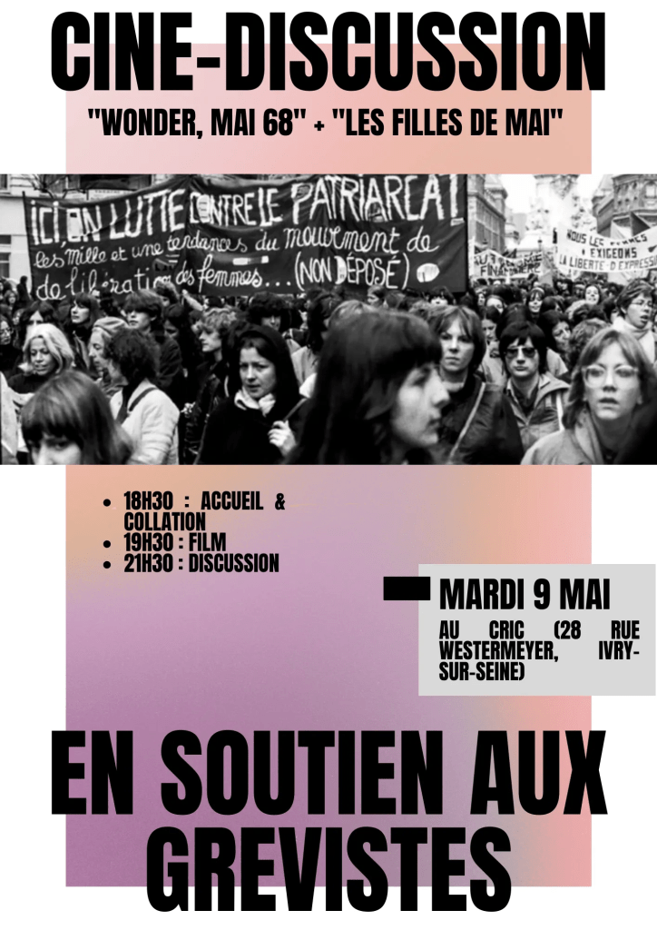 Ciné-discussion « Wonder, mai 68 » + « Les Filles de Mai » mardi 9 mai 2023 en soutien aux grèves