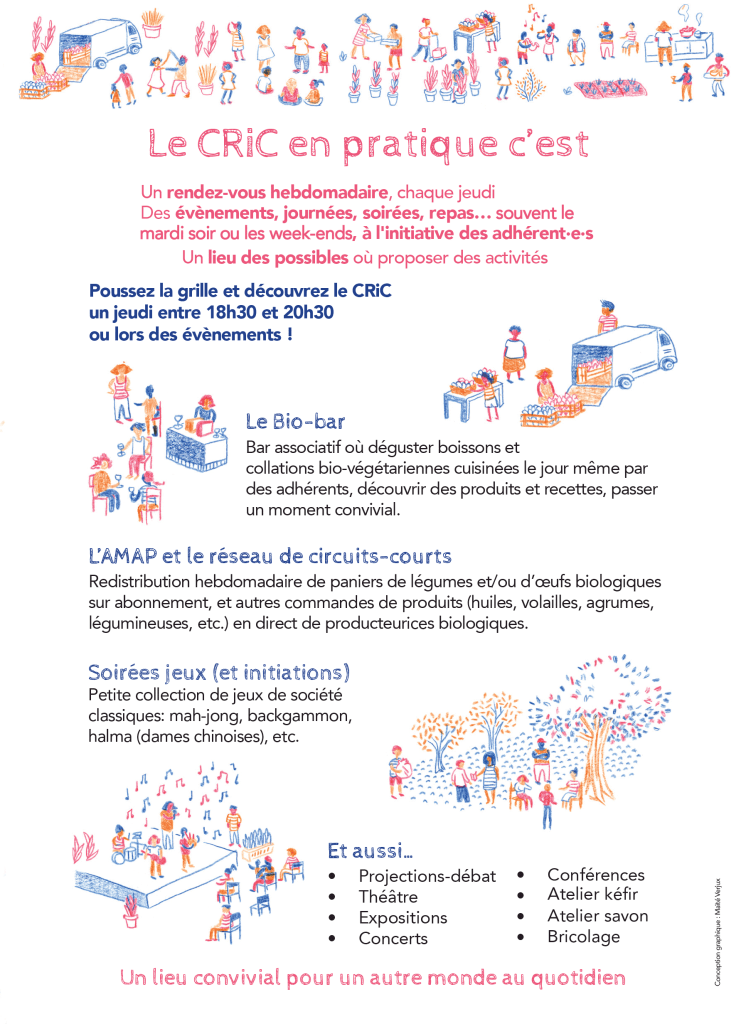 Le mieux est de venir nous rencontrer pour discuter, vous pouvez venir ce jeudi ou un prochain jeudi (c’est le principal jour de rendez-vous du CRiC) entre 17h30 et 20h30 !